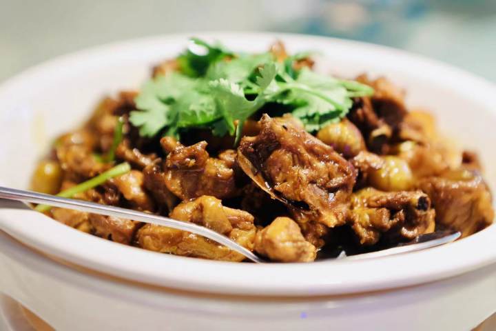 栗子炒子鸡,是杭州36道名菜之一。其中的栗子,参赛的12号选手王大姐说,是自己9、10月份的时候买的糖炒栗子,然后一直冷藏封存,然后这次拿来作为食材之一。没想到,现场评审团点评很好,“美食往往是时间的味道”。