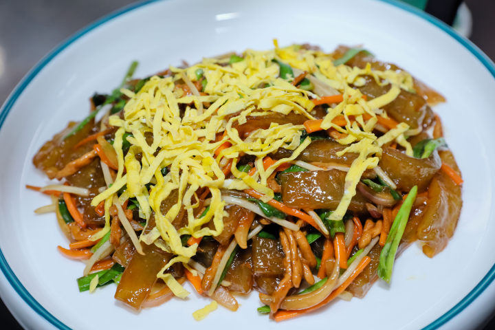 这道干炒红薯粉皮,现场得到了专业评审表扬哦。重点就是他的粉皮,完全是DIY,口感很有韧劲。