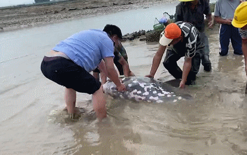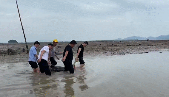 记者从西店镇获悉,因为当地水位满足放生条件,并且两只海豚状态良好,救援人员和当地政府相关部门负责人经研究后决定,由大家用简易担架将海豚抬到水位较深的海边就地放生。