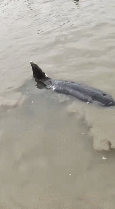 然而,下午1点15分左右完成放生,1点40分左右,这两条海豚又回来了,一直往岸上冲。