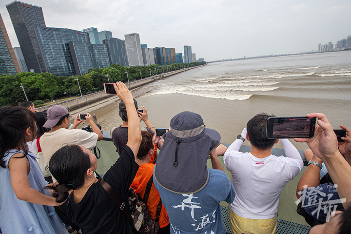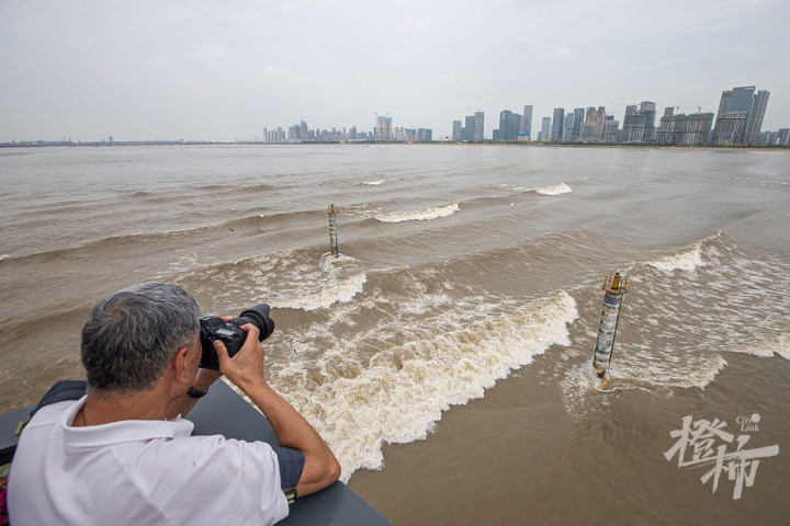 “这个潮水太小了,没啥看头。”72岁的金大伯是老杭州人,看了几十年潮水,他说,今年的“鬼王潮”不如往年有气势。“今天水位不高,风也不大。”