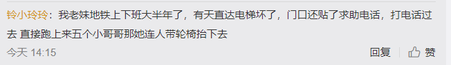 想对轩轩伸出援手的热心市民不止一个——出地铁进垂梯时,就有一位女士主动接过了她的轮椅,把她推到了电梯外,轩轩直呼“太有安全感了”。