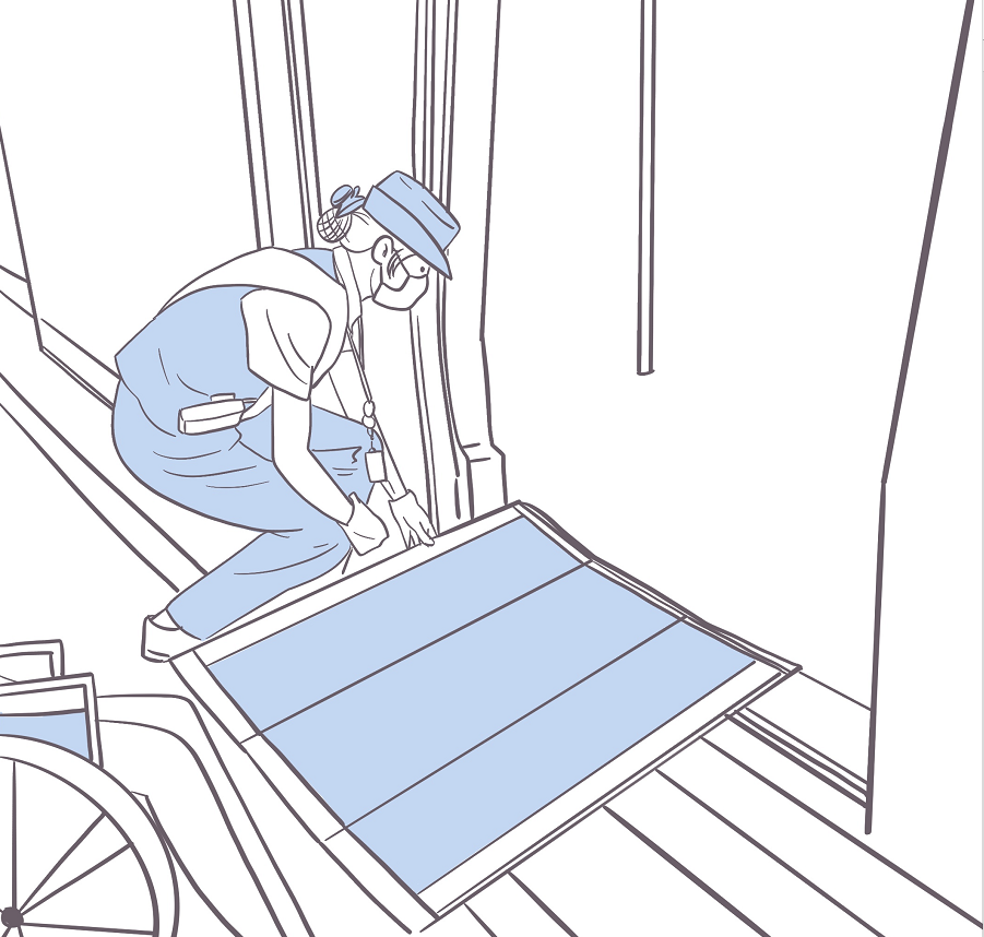 通过垂梯到达站台时,工作人员已经在那等候。上车时,由于站台与列车之间有缝隙,所以工作人员贴心地帮她铺了一块轮椅踏板,再由大哥平缓地把轩轩推进车厢。