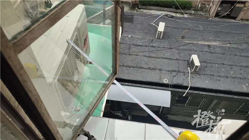 不过,和楼上楼下其他邻居安装的位置相比较,安装在王奶奶家主卧窗台下的这台外机距离窗户更近,记者拿出卷尺测了测,只有85厘米。