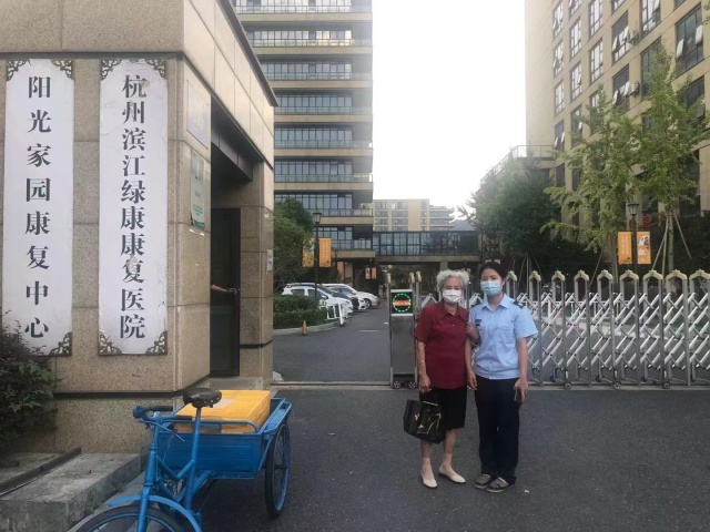 谢莉陪同老太太坐上1507M路,到了湘北桥站,一下车周奶奶就激动的说“是这里是这里!”由于老人年事已高,手里还拿着东西,谢莉不放心她一个人,一直陪着老人走进大门,此时已经是17:30了,“真是要谢谢你们啊!”周奶奶拉着谢莉的手不断道谢,还在小区大门口一起合影。