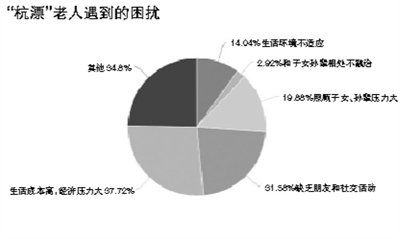 记者实地调查了解到,有许多像黄姿颖一样的“杭漂”老人,虽已来杭多年,但由于语言和生活习惯的差异,加上远离亲戚朋友等原因,他们面对着许多困难,始终无法适应新的生活环境。本次问卷调查也显示,37.72%的老人觉得在杭生活成本高、经济压力大,31.58%的老人有缺乏朋友和社交困难的困扰,19.88%的“杭漂”老人面临着照顾子女、孙辈压力大的困境,14.04%对目前的“杭漂”环境不适应,2.92%的老人觉得和子女、孙辈相处不融洽,甚至有焦虑、失眠等情况。