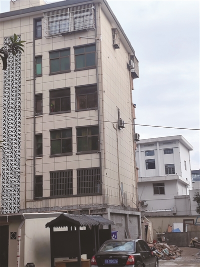 目前房屋外围的支撑钢筋已经陆续撤掉 记者 刘抗 摄