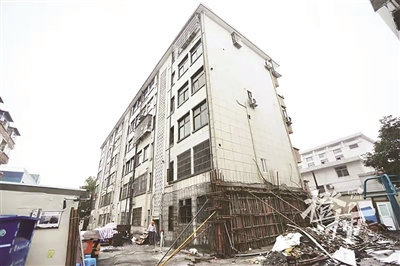 经鉴定,这幢楼房屋危险等级评定为D级,不能住人。当地政府要求整幢居民暂时居住旅馆或投奔亲友,封闭四周过道,经专家论证后,委托专业加固单位加固施工。