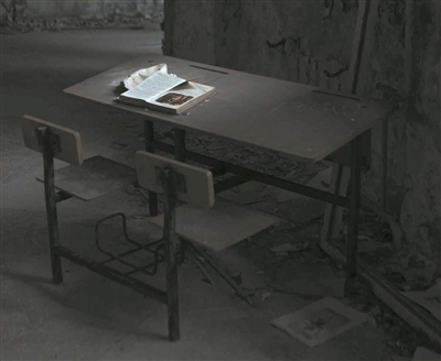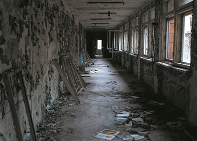 走过每个房间,我都想象它当初的功能:这里应该是宿舍区,里面还放着几张小床;那是音乐教室,有架残破的钢琴;这个大房间应该是礼堂,前面有舞台的架子;那是实验室,地上有些试管……在一条走廊上,我忍不住去按了一个电钮,真希望听到铃声大作,孩子们嬉闹着涌进教室,然后就听到老师的讲课声。