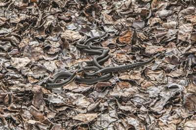 在普里皮亚季的入口,一群蛇盘踞着,见到有人来了,迅速四散。