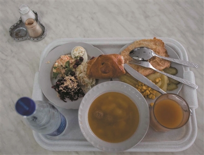 午餐相当丰盛,有蔬菜沙拉、土豆泥、炸鸡排、土豆牛肉汤和芒果汁。在这里,我又好奇地拿出探测仪测了测,周围的辐射值只有0.19微西弗。