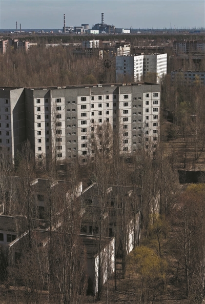 站在普里皮亚季居民楼顶,不远处可以看到核电站。