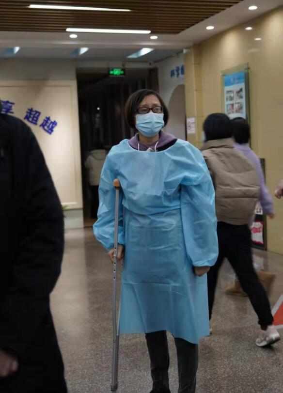 在东新园点位,一位拄着拐杖坚守岗位的工作人员格外引人注目。据了解,这名工作人员是来自拱墅区卫生健康局医政社管科的韩月美,她在三周前不小心摔伤了腿,现在还在康复期,站久了腿仍然会很痛。但疫情突袭,她顾不上疼痛第一时间赶到现场,参与协调多批次医务人员检测工作,从12月7日晚上7点一直工作到8日上午出稿时也没休息。