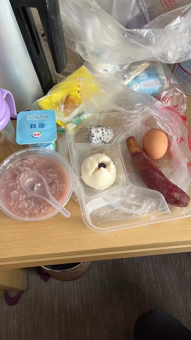 孩子们隔离期间情况怎么样?吃住还习惯吗?这是大家最关心的。今天上午,梦想家幼儿园小三班的孩子家长余女士给记者发来了她和孩子的“隔离第一餐”。早餐很丰盛,有鸡蛋、面包、番薯、粥还有牛奶,她和孩子两个人都吃不完。