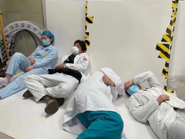 在朝晖街道社区卫生服务中心,不少医务人员累到合衣而眠,令人感动。