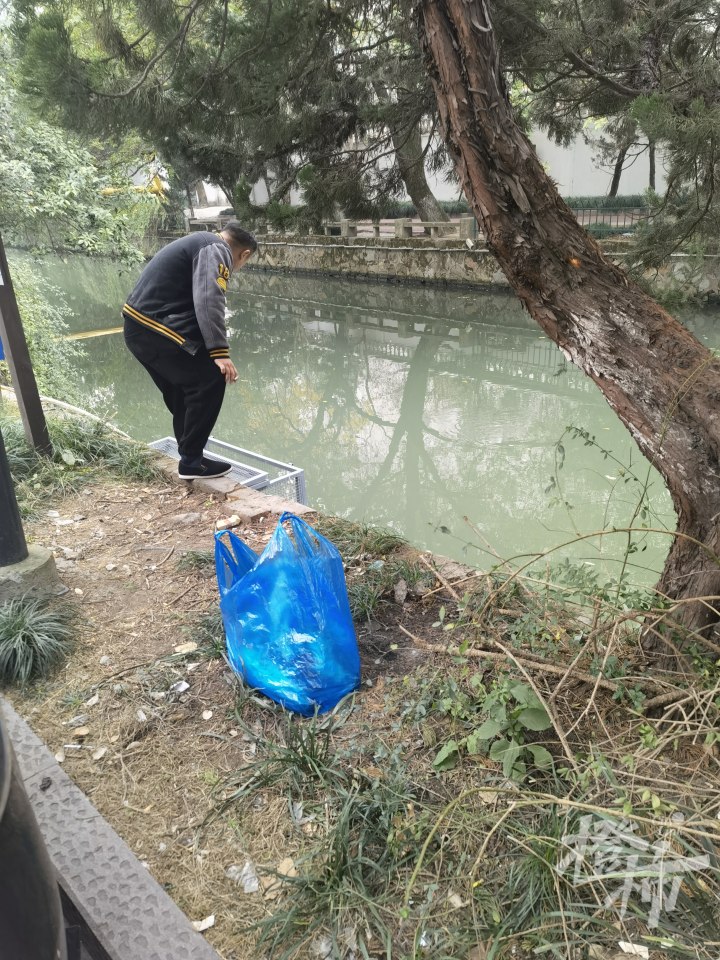 一位保安大哥说,他今天七点多上班的时候,就看到很多人来抓鱼了,“听说早上六点就发现有大鱼了,基本上都是鲤鱼。”保安大哥就在附近工作,说以前这段河道从来没有一下子出现过那么多大鱼,“有可能是天气原因,水里氧气不够,鱼都上来透气了,感觉有点木木的。”他分析道。