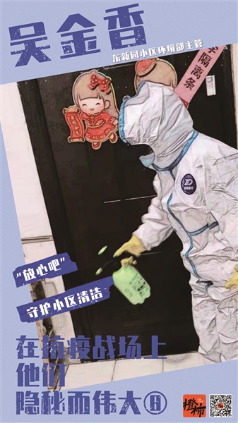 “年龄保密”的吴金香,是东新园小区的环境部主管,管着整个小区的卫生。他们不是“白衣天使”,但他们也是守护城市的“战士”。