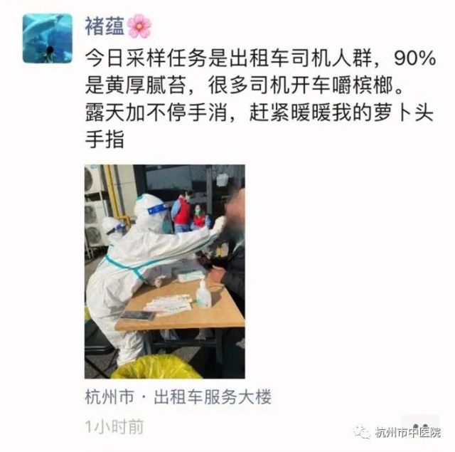 中医妇科的褚蕴医师就是其中一位“大白”。12月18日,她和同事们来到了位于西湖区三墩的杭州市出租车服务大楼,本次的采样对象都是平时在路上跑车的司机师傅们。
