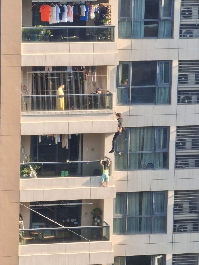成功将小女孩抱回了阳台