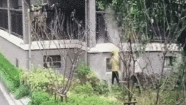 小心翼翼地从12楼阳台翻出