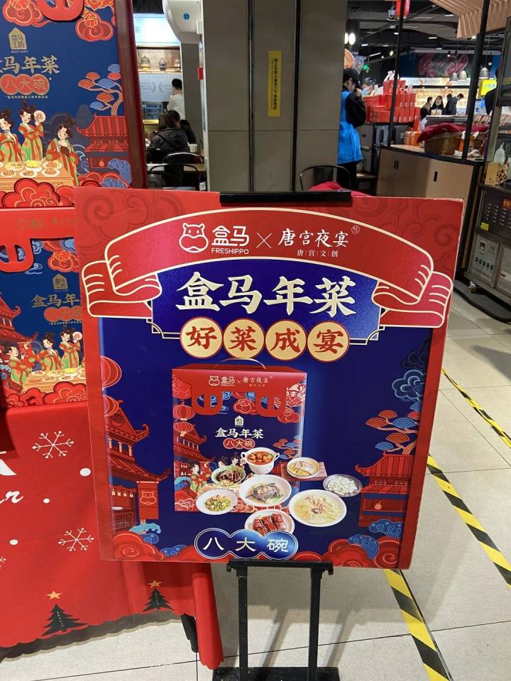 除了这几款特别的预制菜,盒马超市今年也能“承包”你家的年夜饭。有两种方式,一种是“代理”餐厅,有黄龙饭店和唐宫夜宴可选;另一种就是自营,以海鲜大餐为主。