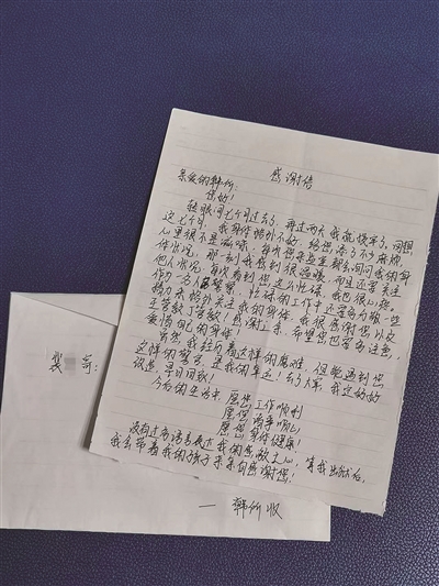 离开监区前往服刑的时候,她给韩晓艳留了一封信,信里有一句话让韩晓艳感慨万分:“……只有你真心在关心我,帮助我。谢谢你的关心,你是照进我心里的一束光。”