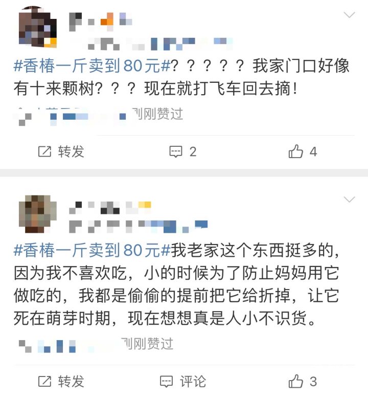看到香椿的身价,有网友不禁打趣说:“我家门口好像有十来颗树?现在就打飞车回去摘!”