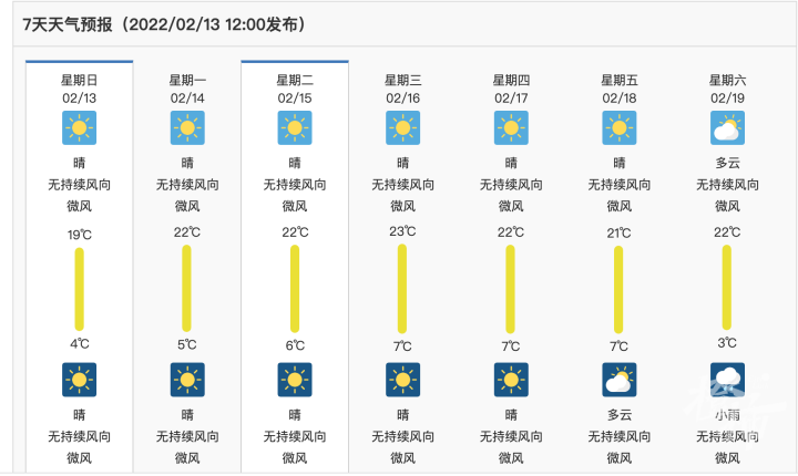 好奇地去中国气象局的官网查了下这两地的气温,啧啧,云南红河现在的白天最高气温都在20℃以上,凉山彝族自治州首府西昌市的最高气温,除了今天跌到了19℃,其余时间也都在22℃左右。这散发浓浓春意的数字和太阳,真是看着令人羡慕。