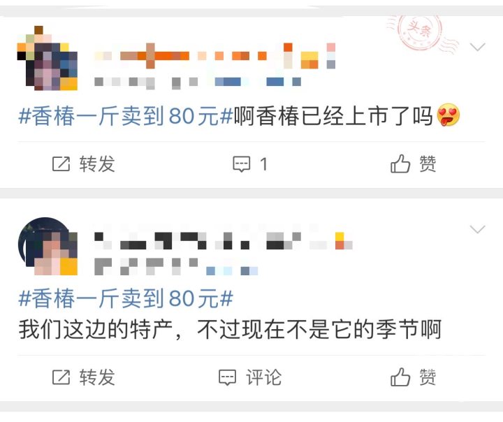 香椿又双叒叕上热搜了,今天#香椿一斤卖到80元#的话题直接冲上了热搜第七。而去年,#上海香椿卖到90元一斤#也一度冲上了热搜第六过。