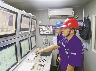 李亚超(右一)在操作盾构机。