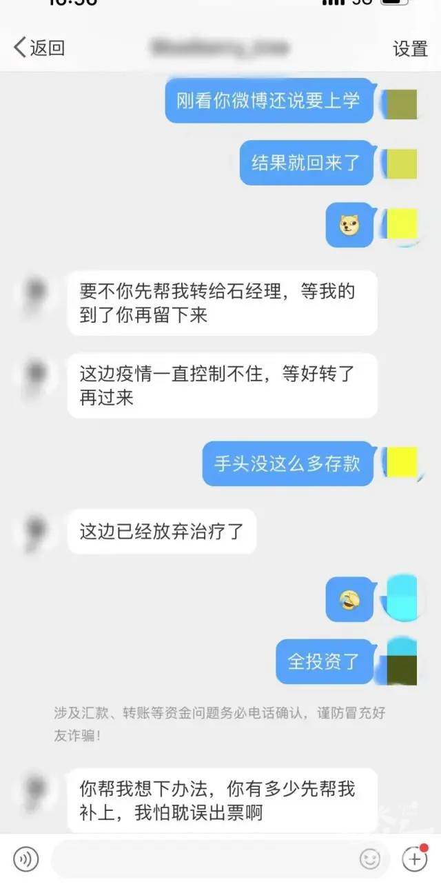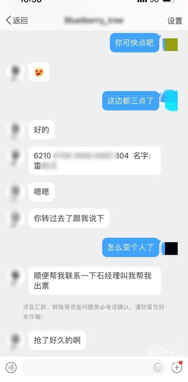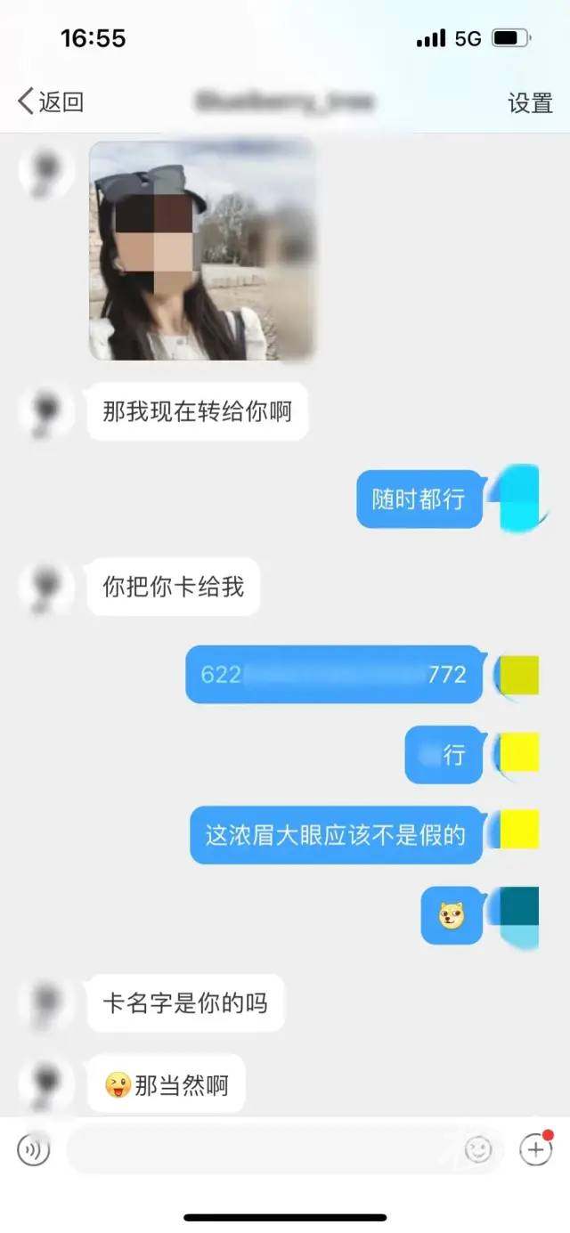 随后,女同学发了自拍照,王先生确认”浓眉大眼的应该不是假的“,但女同学发来的转账卡号名字并不是石经理,当他提出这点,但女同学又说:抢了好久才抢到的,又让王先生跟石经理说下钱已经转过去了……