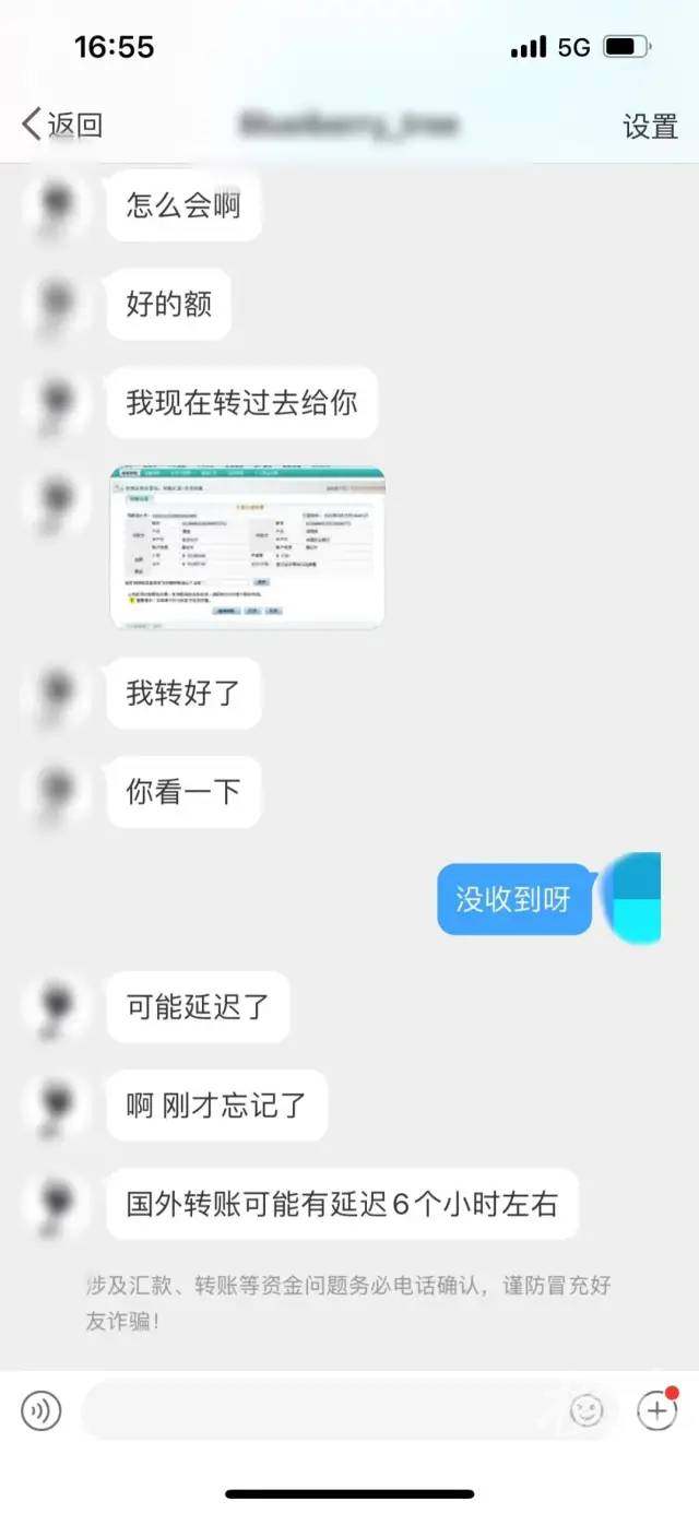 王先生转了钱过去,女同学说自己马上给他转,要来了王先生银行卡号,可王先生没收到,女同学说,”国外转账可能延迟6小时左右“。