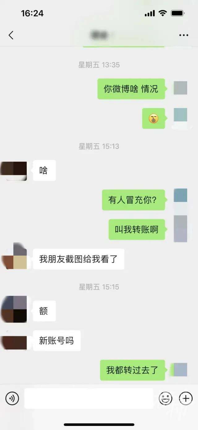 王先生起先还不太相信,”感觉有点像网络骗局“。微博聊天页面也提醒:谨防冒充好友诈骗!