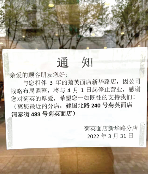 都市快报讯 昨天,一则消息在不少杭州人朋友圈热传,“菊英面店新华路分店要关门了。”