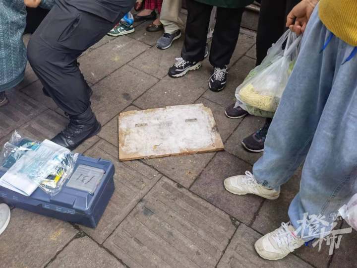 一位商铺老板说,“早上那阵子人更多。当时,我听到‘砰’的一声,到门外一看,一个老太太瘫倒在楼下的人行道上,脑袋上流血,地上是一块大木板,至少有20公分长、宽有10公分。看样子怕是不下一斤的重量。”
