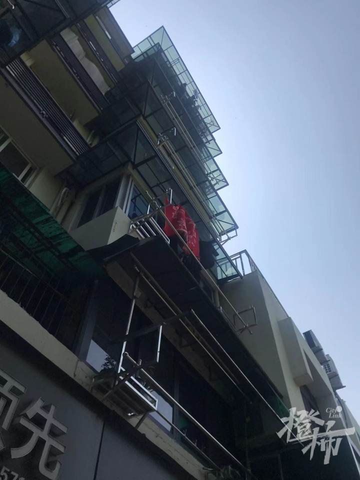事发现场紧靠临街商铺前的人行道上,商铺上方是一排7层高的居民楼。