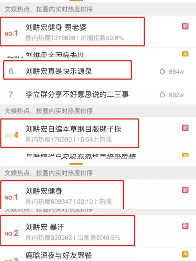 其中,微博话题#刘畊宏直播#、#刘畊宏回应穿羽绒服跳操#、#刘畊宏健身#、#刘畊宏自编本草纲目版毽子操#等话题,接连三天冲上热搜位列高位。