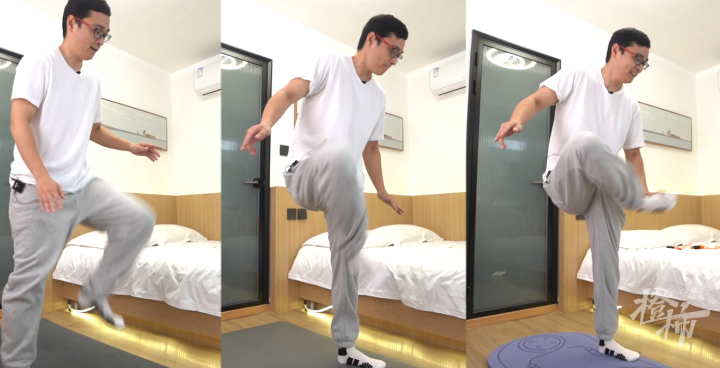 第二次实测,实验员是光脚在三款垫子上进行。