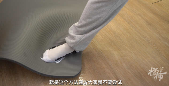关于垫子防滑,网上有人支招说,只要在地板上撒点水,垫子和地板就会牢牢地吸在一起。但好奇君测试发现,这个方法并不靠谱,就我们使用的这款垫子和地板来看,撒上水后反而更滑,这点各位橙友们一定要注意!