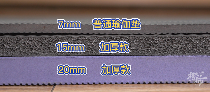 7毫米这款是普通瑜伽垫;15毫米和20毫米的标注为加厚型、有减震静音的效果。