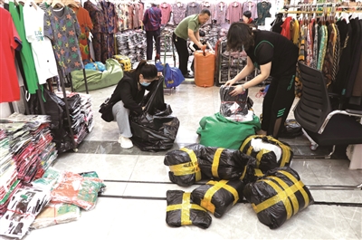 妈妈(右)在店里忙着打包货物