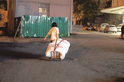 每包货物重60公斤,杨洋妈妈每天都要拉着这样重的袋子进出市场。