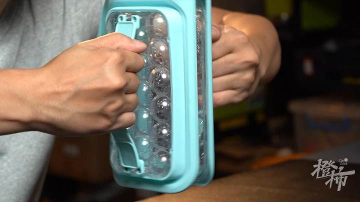 这两年很流行,灌上水盖上盖子,不需平放,冷冻室能塞下就行。这么大的壶,只需倒入约五分之一的水,挤压一下冰球格就满了(挤压时小心些,不然水会喷出来),冻完之后两边一拉,12颗冰球自动脱落,冰球像水晶球一样,颜值拉满。