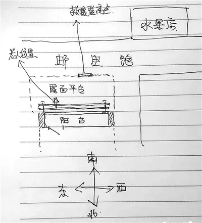 钱炯手绘现场示意图