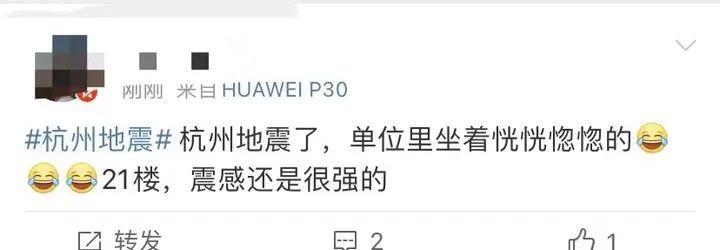 某某某是黑色星期五晚高峰时段:杭州三十米层高东湖高架附近震感明显,持续10秒左右。