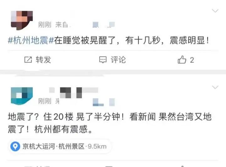 杭州很多市民反映有震感,特别是靠近沿海和住在高层建筑的居民,震感特别明显。台湾距离杭州约800公里,那么台湾地震我们这边为什么会有震感呢 ?