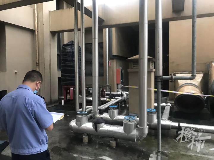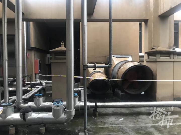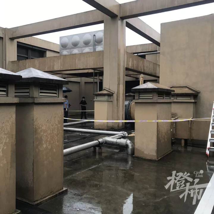 在楼顶的通风设备周围,已拉起了警戒线,几名民警正在现场拍照做笔录取证。