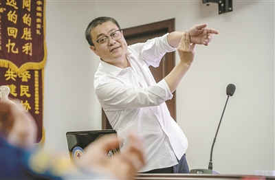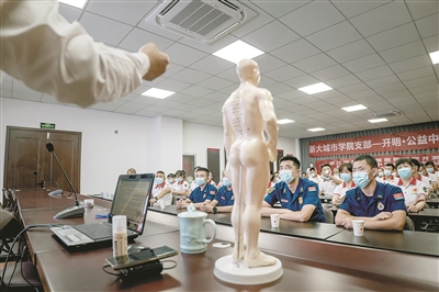为了能更清晰地讲述中医急救的原理,李郁丰还带来了人体模型。