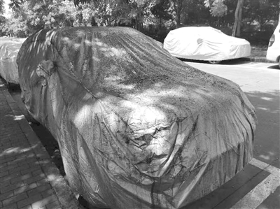 记者沿着尧典桥路(池塘庙路-董家桥路)一路边走边数,发现800米长的道路上,车位有200多个,全部停满了车。绝大多数车辆看起来外表整洁,但也有小部分车辆一看就是长时间没有移动——有的罩着车衣,在长时间日晒雨淋之下,车衣已经由银变黄,烂成破布;有的浑身上下都是污渍和锈迹,车顶和雨刮器积攒下了厚厚一层树叶;还有的外表破烂不堪,车胎已没气,像是趴在地面上,车身上还被贴上了“高价收车”的小广告。数下来,类似的“僵尸车”共有49辆。