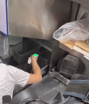 对于烹炸油更换的情况,店内工作人员表示,店内统一要求每天早晚各测一次烹炸油的极性组分数值,国家标准是不能超过27,而必胜客内部要求分数值不能超过22,如若超过就会马上进行更换。今天使用的油,正好就是早上刚刚更换过的。工作人员也现场进行了测试,数值为3.5。